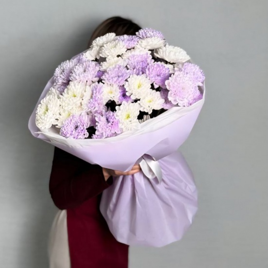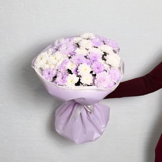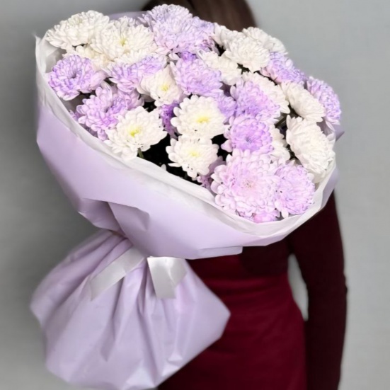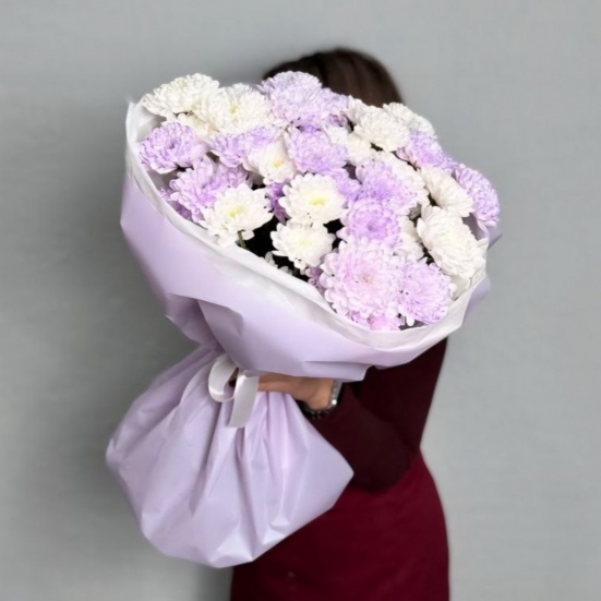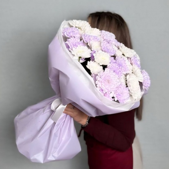 Букет из 9 фиолетовых и белых хризантем в Череповце